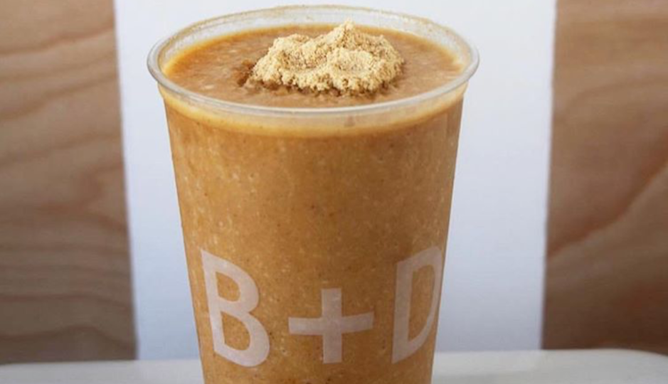 Bryn + Dane’s pumpkin pie smoothie, a fan favorite, clocks in at only 180 calories with 13 grams of protein. We’re sold.
