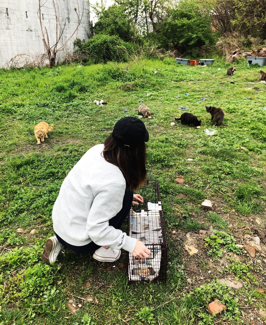 Lauder volunteers for Stray Cat Relief as a trapper (trap, neuter, release) and foster. / Photograph courtesy of Kelsey Lauder