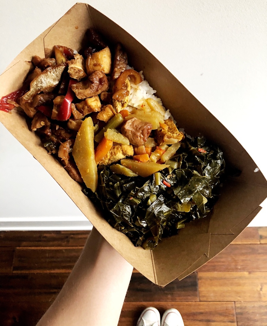 6:30 p.m. — I feel a little overwhelmed from the day and ask my husband to pick up Hardena on his way home. I feel so blessed that this gem is only a few blocks from our house. It is the most comforting, delicious, filling meal, and it may be my favorite in all of Philly. I love it for its attention to flavor and making vegan taste so good. I get what I always do: rice, tempeh, collard greens, and veggie stew ($10.80). My belly is so happy.