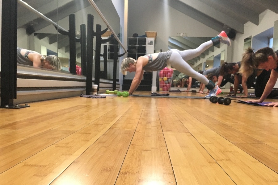Meizinger teaches the 5:45 a.m. Burn and Sculpt class at Balance Chestnut Hill. / Photograph courtesy of Casey Meizinger.