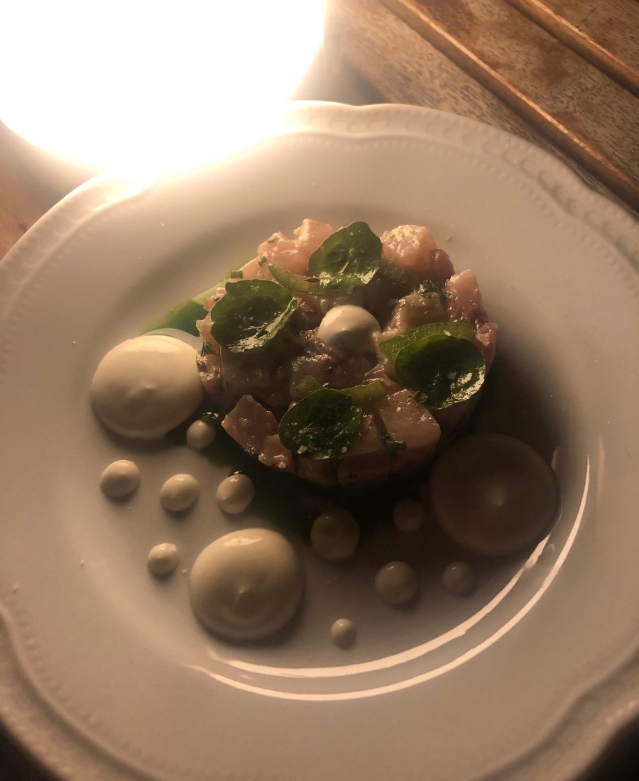 To end her week, Davala enjoys the tasting menu at Suraya, including the samke nayyeh. / Photograph by Amanda Davala.