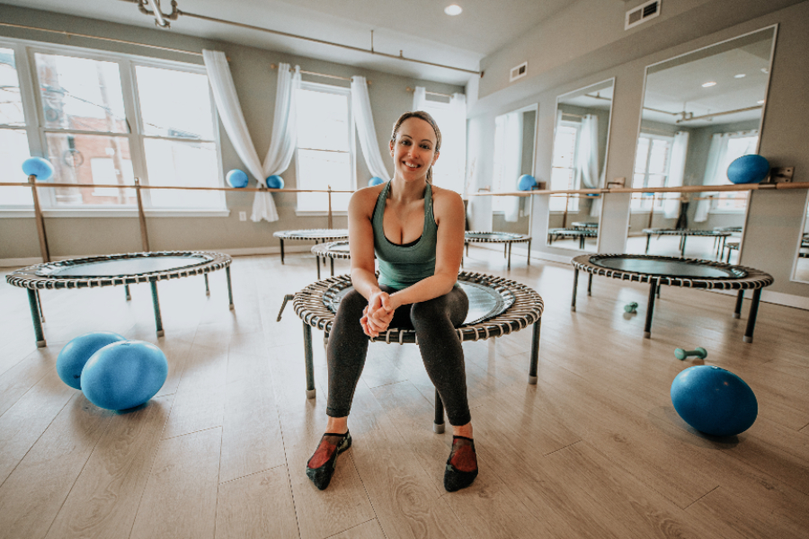 Shake up your fitness routine with rebounding, the high-cardio, low-impact trampoline-based workout, now offered at owner Juliet Sabella’s The Wall Fitness Studio in Manayunk. / Photograph courtesy of The Wall Fitness Studio.