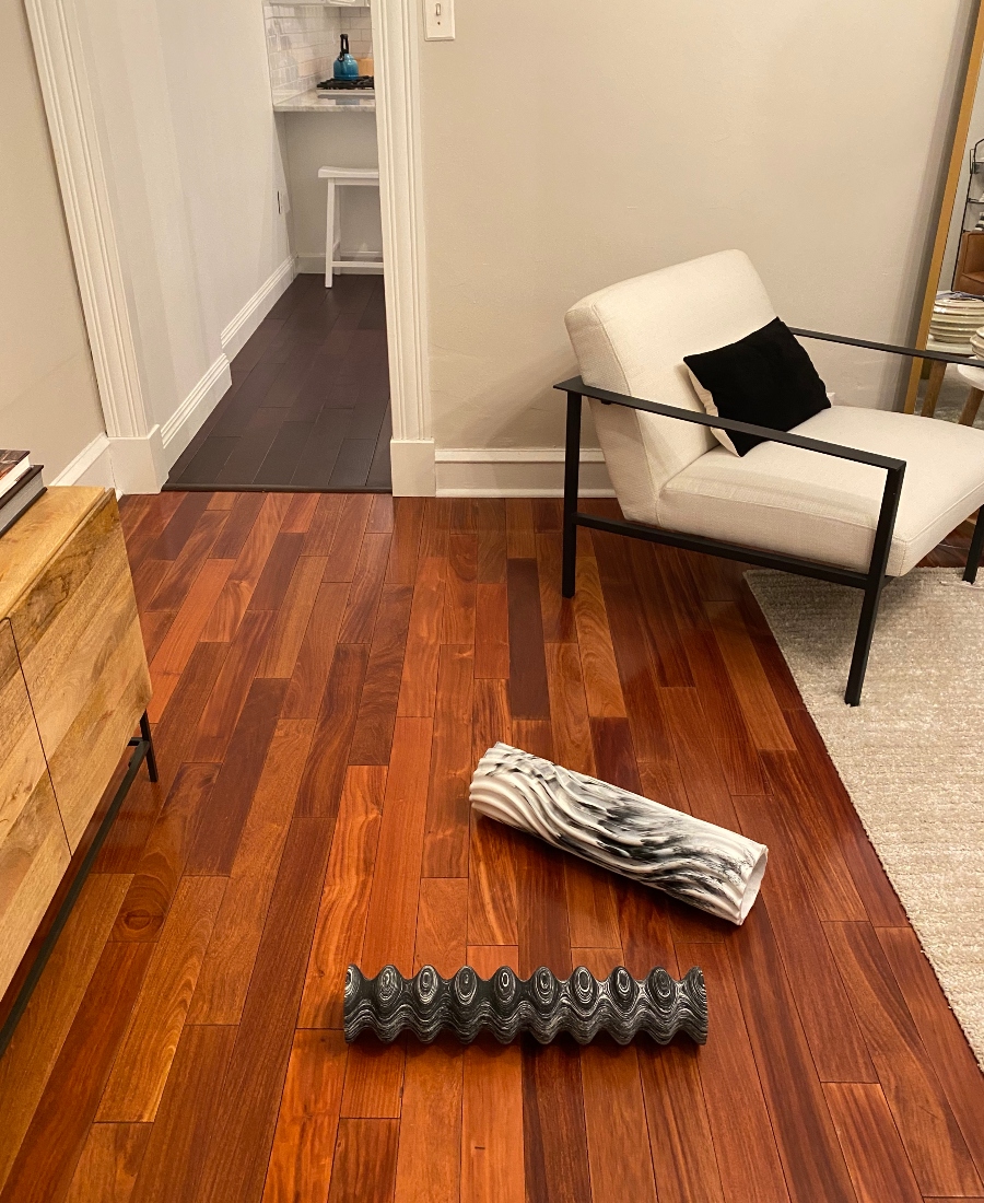Every morning, Stauffer begins her day with a self-care routine of foam rolling her muscles and jade rolling her face. / Photograph by Ali Stauffer.