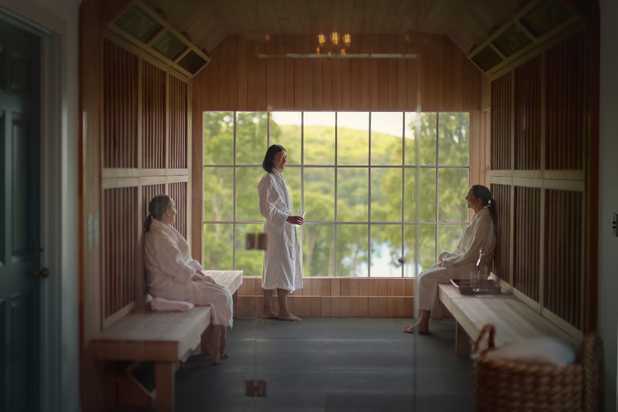 Warming up in the sauna / Photograph courtesy of The Ranch Hudson Valley
