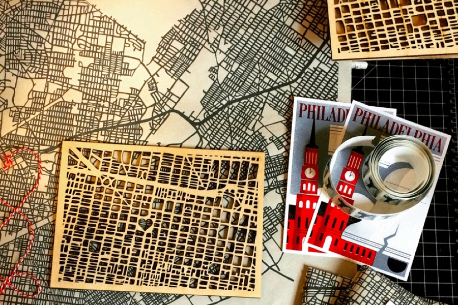 Philly Love Notes artist Emma Fried-Cassorla’s gorgeous woodcut maps of Philadelphia neighborhoods are still a hit. Her ready-to-go designs feature Center City, South Philly, Fishtown, Mt. Airy, and West Philly. She also offers custom options that allow shoppers to mark featured locations and icons. The handmade item sells out fast, so act now.