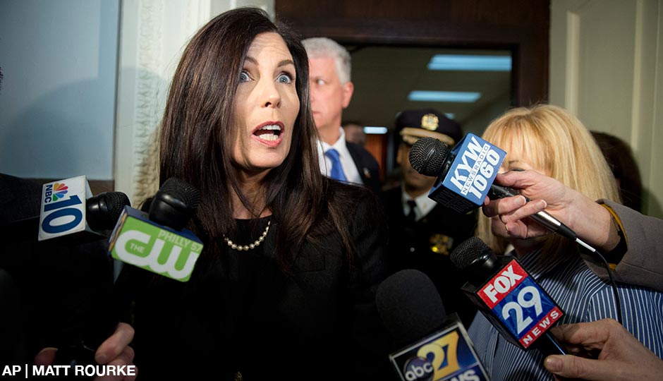 The gist: Last week, after months of speculation, Attorney General Kathleen Kane was finally hit with perjury, official oppression, criminal conspiracy and other serious charges. A grand jury determined that she illegally leaked information to the Philadelphia Daily News in order to sabotage a political enemy. Kane is adamant that she is innocent and refuses to resign for now, but Gov. Tom Wolf is calling on Kane to step down. If she quits, who would take her place? Former Philadelphia District Attorney and mayoral candidate Lynne Abraham is reportedly interested in the gig, according to PoliticsPA.