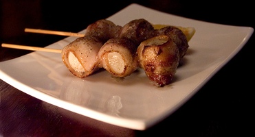 Bacon and Eggs, well, Quail Eggs Wrapped in Bacon were very tasty. How could they not be? We were very amused when at the end of the meal, as plates were being cleared, one of our servers noticed a lone remaining egg, and jokingly scolded us: “don’t waste bacon!” I’m thinking of getting a tattoo that says that…