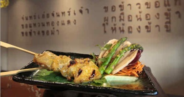 Krapugthong even managed to transform skewered chicken livers, marinated in the sweet dark funk of oyster sauce and soy, into crispy grilled cubes with creamy insides that have become a most unlikely bar-snack infatuation.