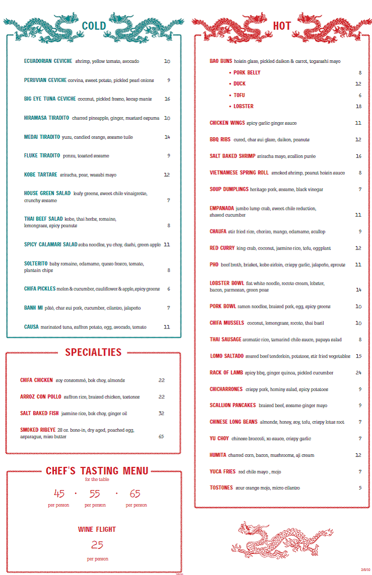 Chifa Overhauls Menu