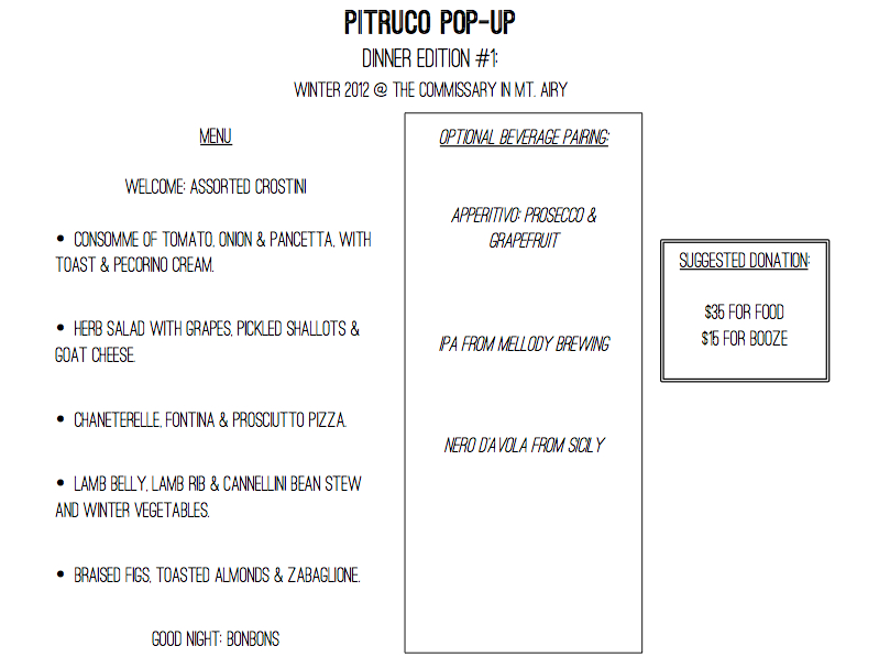 Strada Pasta’s Andrew Gerson doesn’t have a food truck on the street yet but he has opened a street food commissary in Mt. Airy. with the help of the Pitruco pizza truck team. The space will also be used for events. Pitruco is hosting its first pop-up event at the commissary this Saturday night. The menu will include five-courses and an optional beer pairing from Mellody Brewing.
