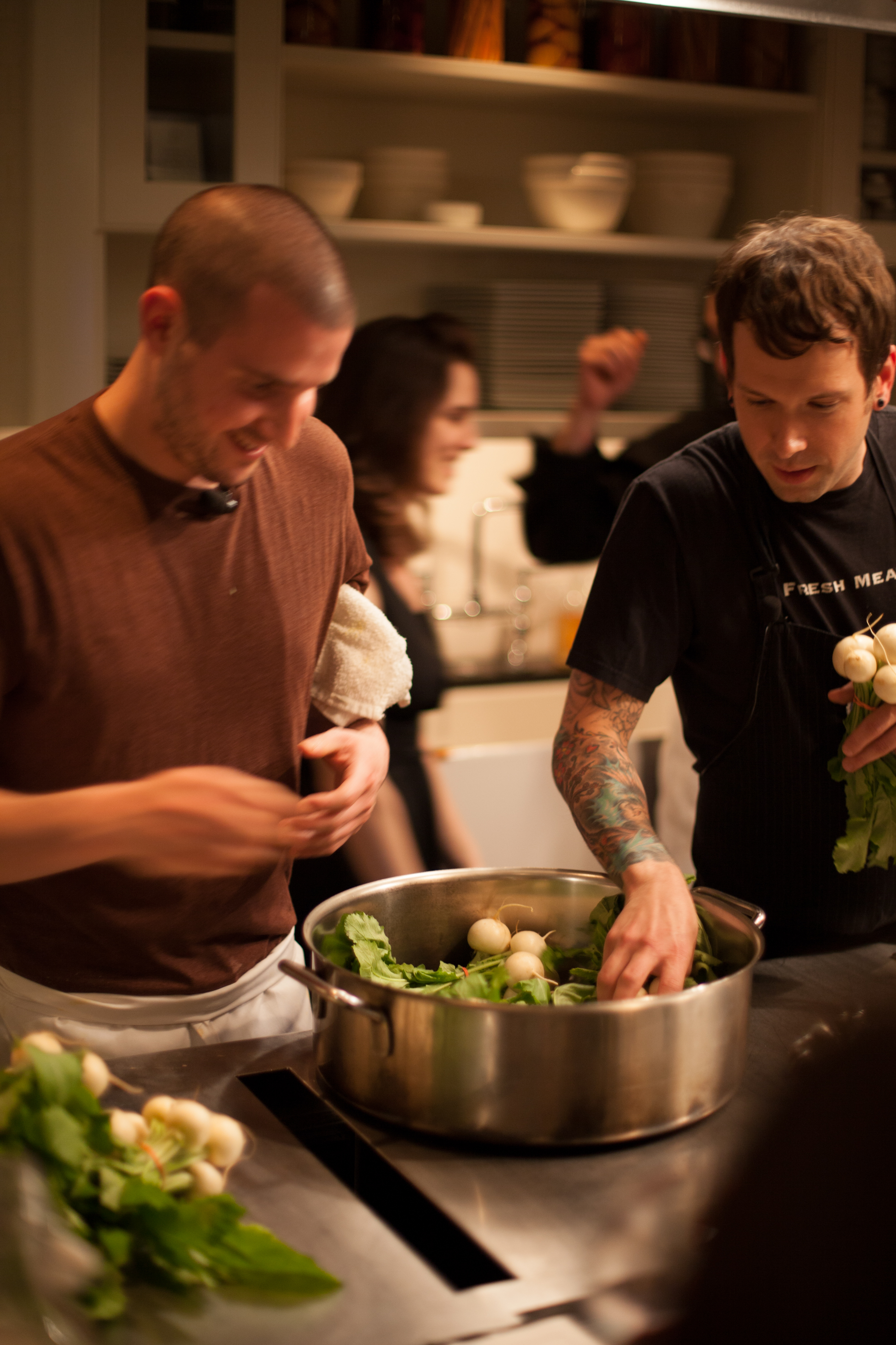 …we took away their sous chefs (giving them seats, cold beers and plates to sample) and replaced them with Jackie and Lily from Cook. And while the ladies acquitted themselves honorably considering the circumstances, taking away a chef’s sous is kind of like removing his right hand–something that we’re thinking about for the next Open Stove Night.