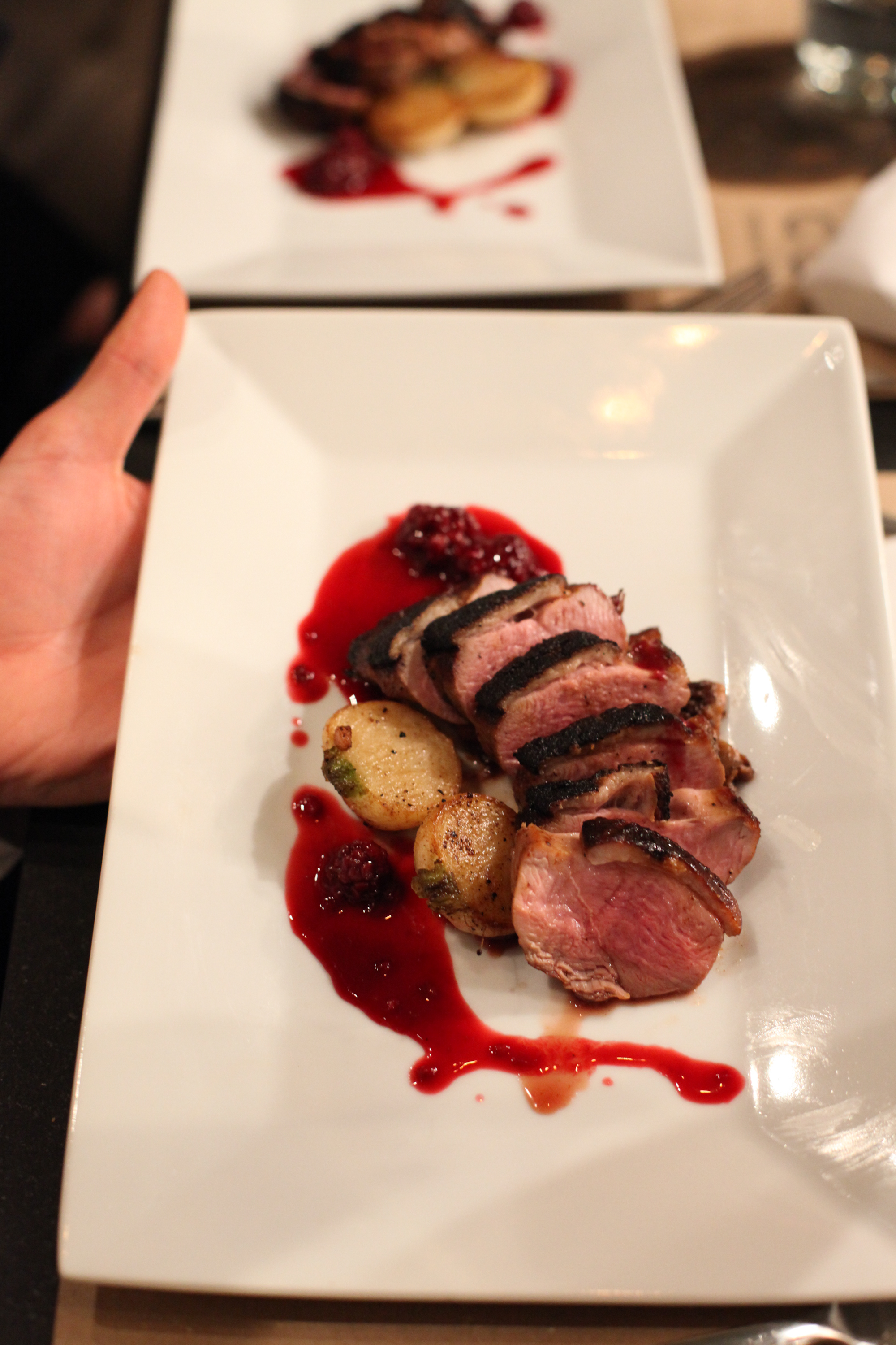 And this was Ben’s. Those are pan-roasted turnips tucked in beside the seared pork loin.