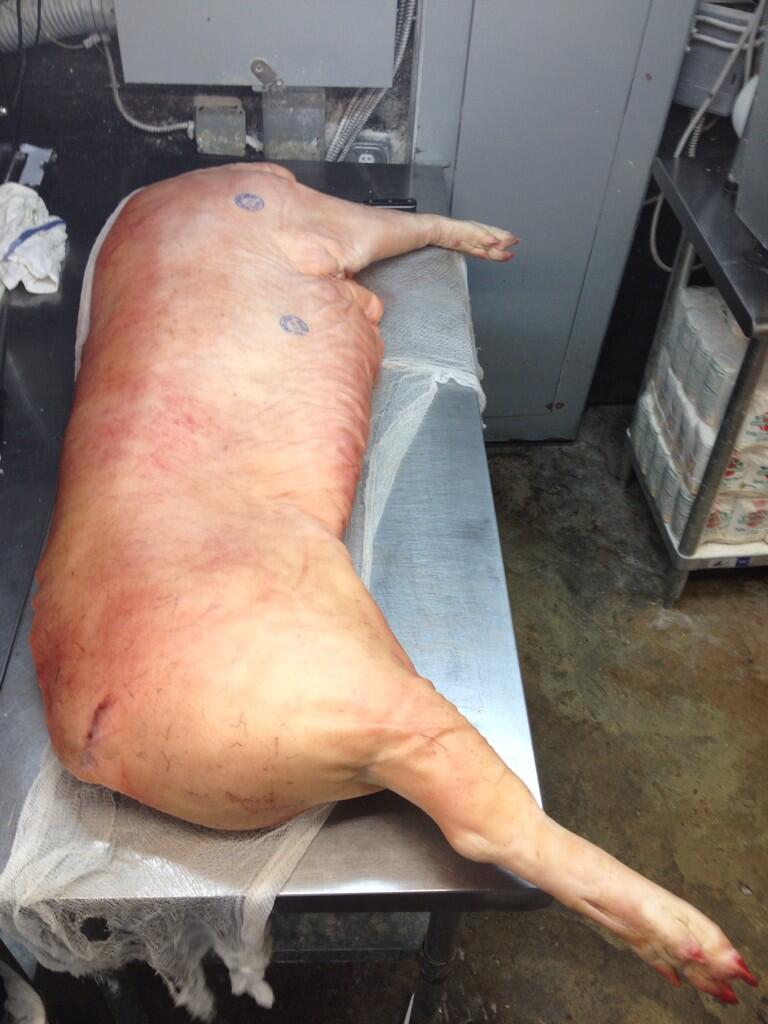 A 300lb hog, just delivered to Le Virtu, and Joe Cicala is thinking salumi #ThisIsWhereYourDinnerComesFrom
