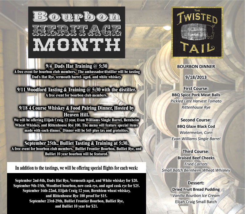 Headhouse Square’s The Twisted Tail is amidst its own little renaissance. Its original scathing reviews imprinted a below-average name to a place with a lot of potential, and then all was fixed. There’s a bunch of whiskey events happening this week at the southern food/whiskey and blue’s lovin’ joint (for National Bourbon Heritage Month), but there’s something that stands out among the rest: