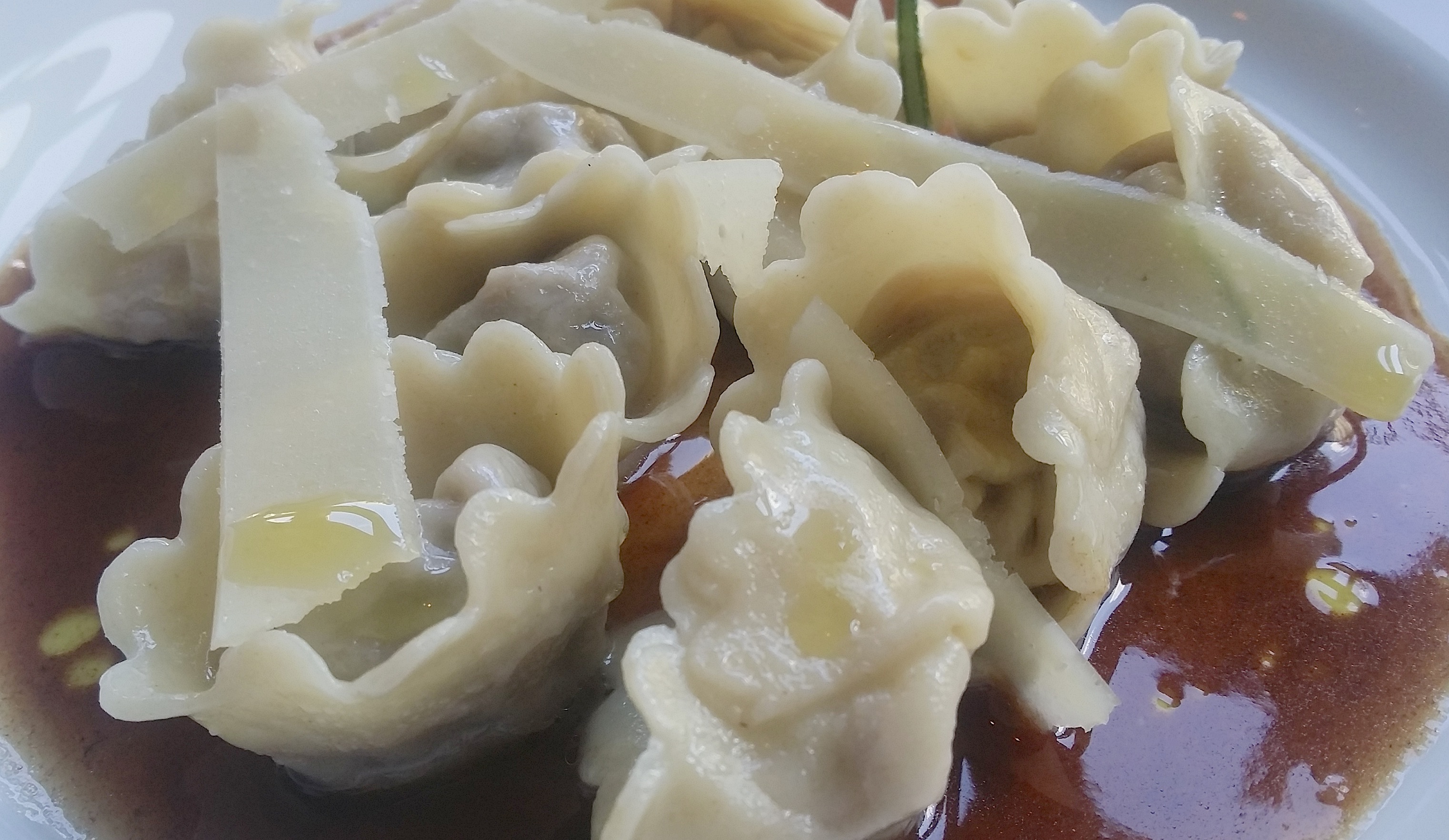 Guests will start with a Chilled Cucumber Soup, followed by Pennsylvania Pride Beef Ravioli (see picture), Striped Bass, and, to finish it all off, Peach Upside-Down Cake.