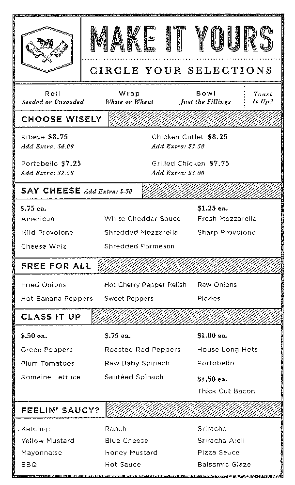 If none of the 22 steak or chicken sandwiches float your boat, there is also the option to create your own.