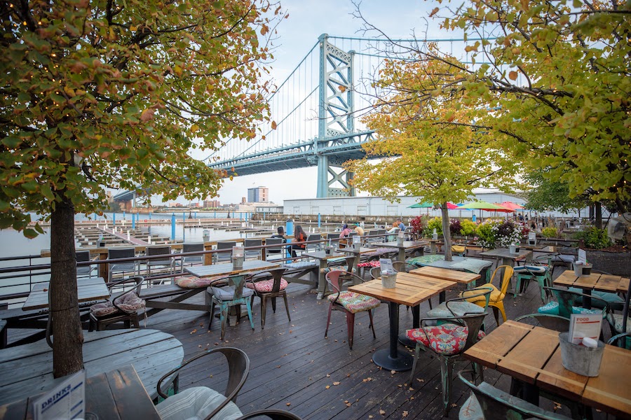 Outdoor seating, great views along the Delaware, live music, occasional dog friendliness and, of course, so much food and booze.