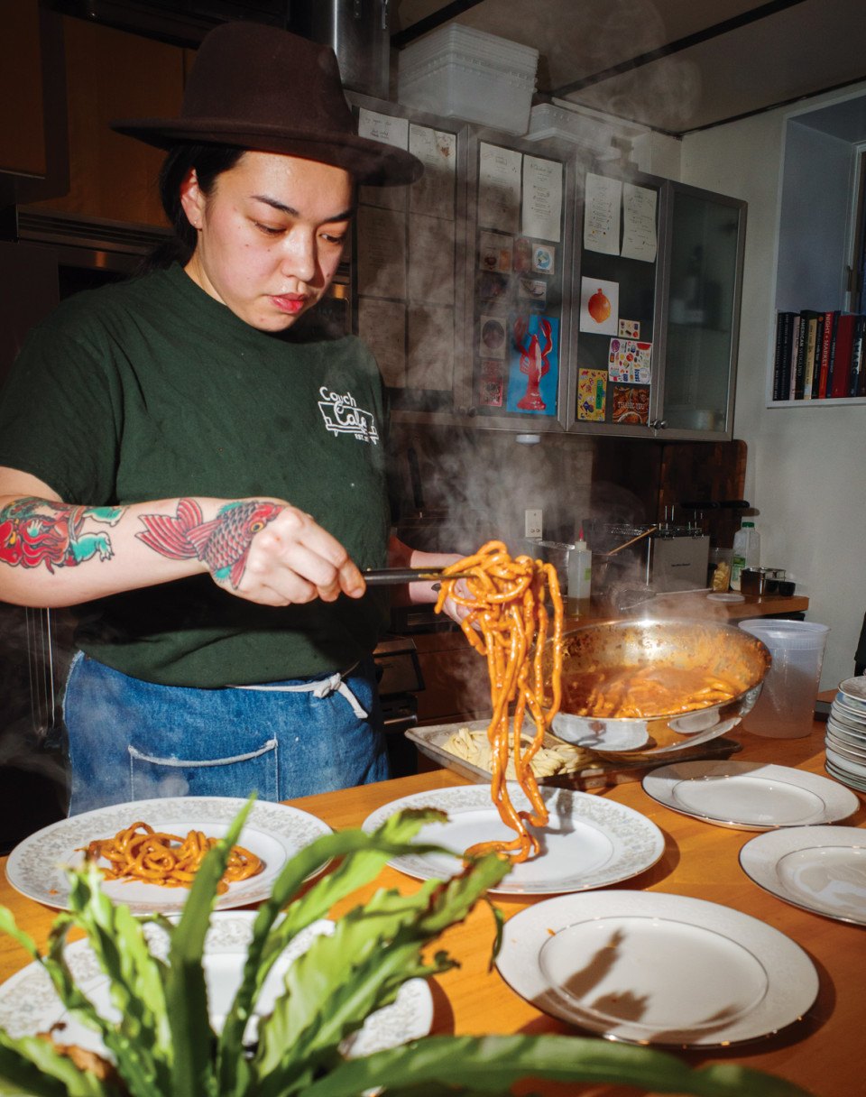 Line cook and Couch Cafe founder Liz Grothe serving diners in her Northern Liberties apartment.