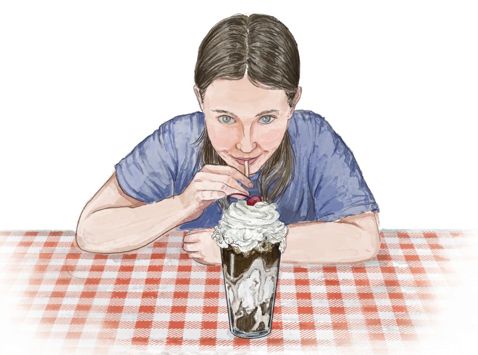 Did I mention we have traditions? Not only do we eat there; we always order the same things. Most of us get cheesesteaks. I get chicken salad. We all get black-and-white milkshakes, though my sister Nan and her husband always split theirs. The Kessel’s proprietors — they must be into their fourth generation now, just like we are — make their shakes by hand, rich and creamy and thick. We order french fries for the table — well, tables, really, since we have to shove several together to fit us all — and bedazzle them with ketchup. The bright-faced waitresses (different every year, turning over like calendar pages) spoil us with extra fried onions and refills on Coke.
