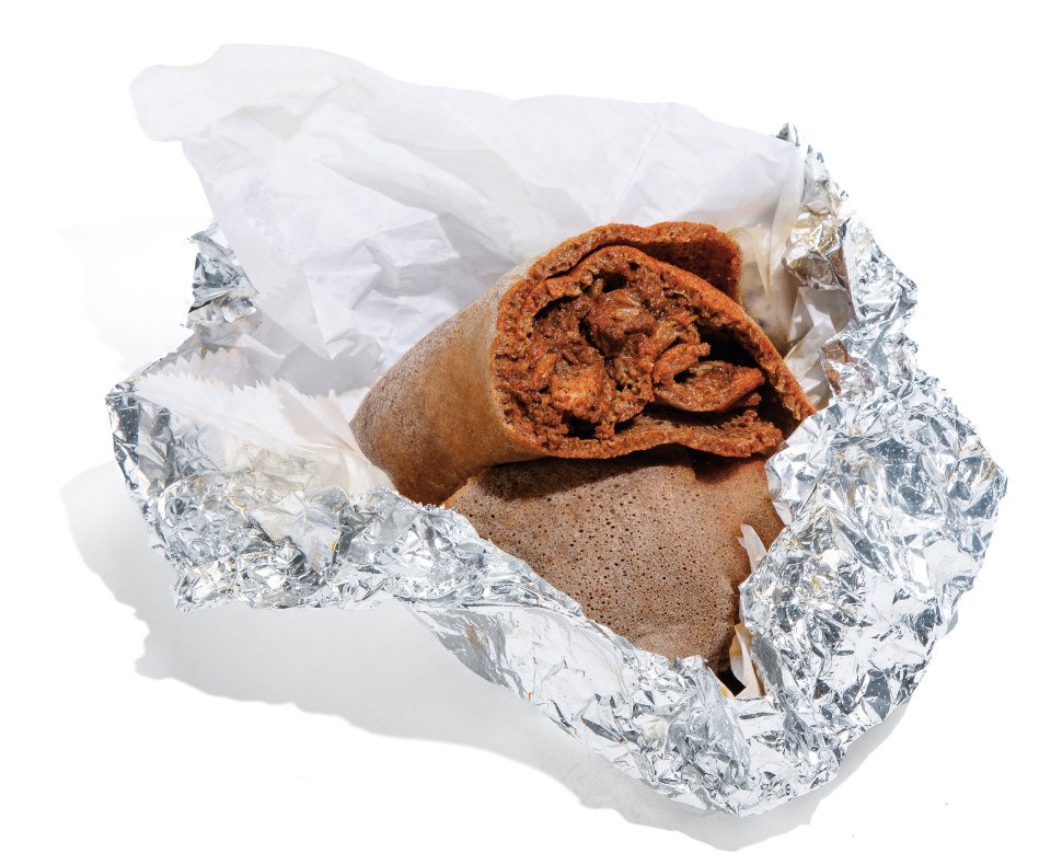 Berbere-spiced beef and vegan lentils usually come dolloped atop an injera-lined platter at your favorite Ethiopian restaurant, but here, they’re genius-ly folded inside the spongy, sour flatbread for a portable, deeply satisfying lunch. 4501 Baltimore Avenue, University City.