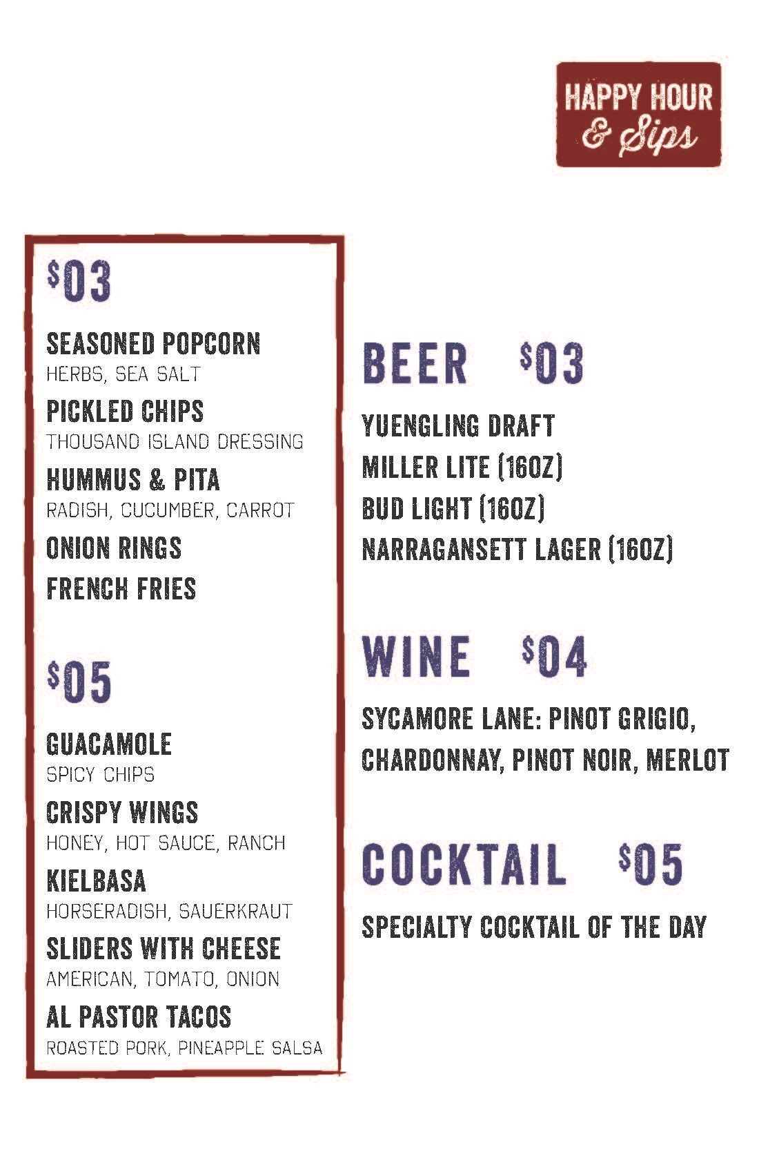 Independence Beer Garden Menus