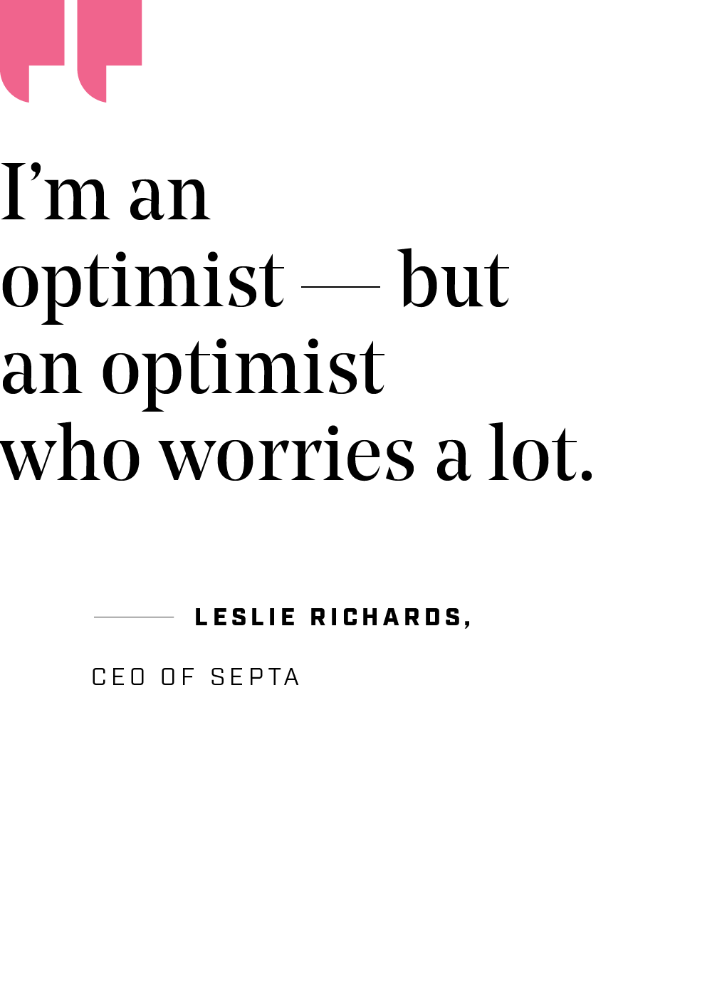 Meanwhile, Richards says she’s pleased with how many movers and shakers across sectors are also talking about this, how the transportation industry and commonwealth are having conversations about funding they haven’t had before. “That makes me optimistic,” she says, though not blindly so. For this moment, Richards paraphrases a hero of hers, Madeleine Albright: “I’m an optimist — but an optimist who worries a lot.”