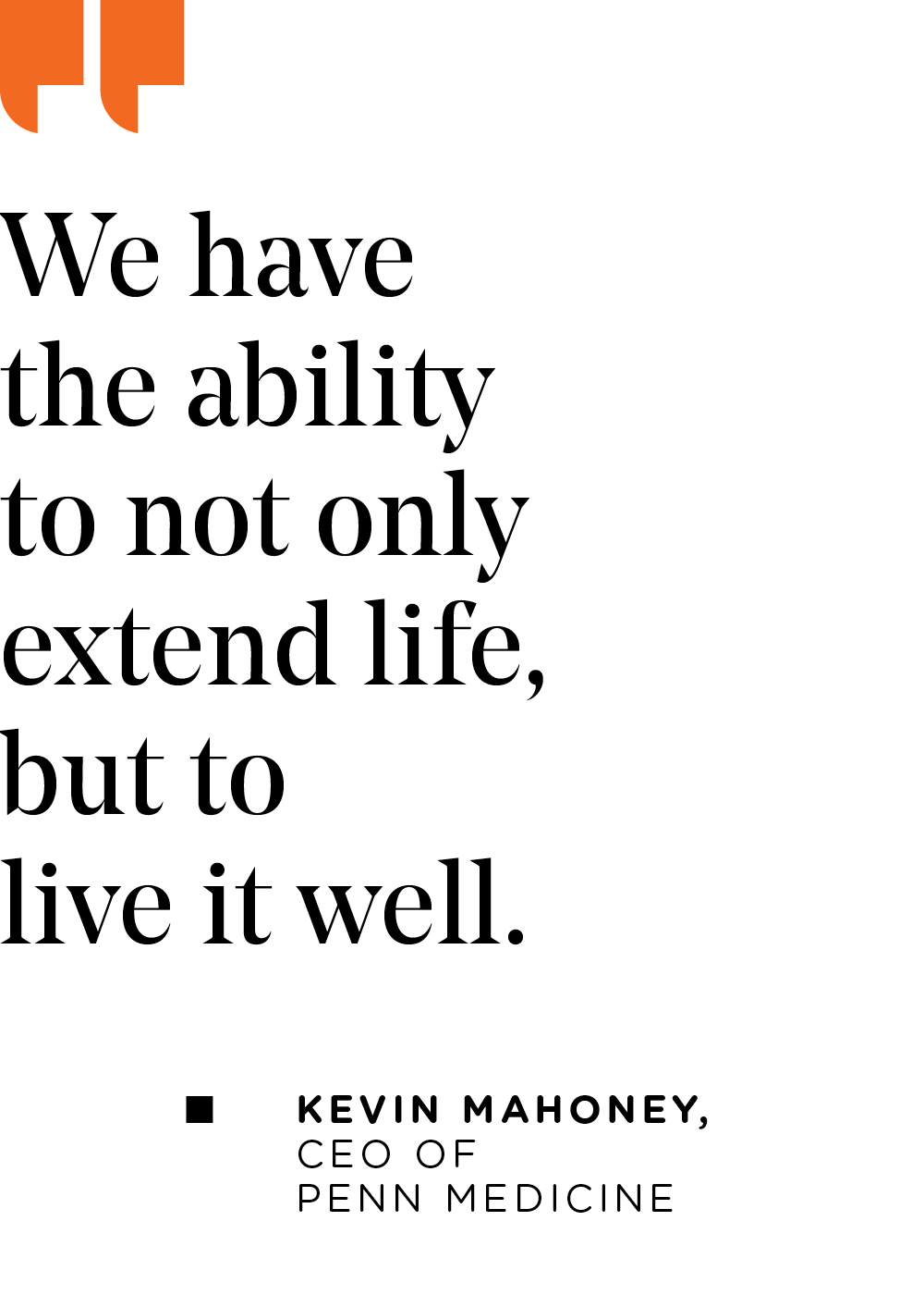 Expanding Footprint: This year, the University of Pennsylvania Health System CEO welcomed Doylestown Health, broke ground on Penn Medicine Montgomeryville — a 162,000-square-foot outpatient center opening in 2027 — and rolled out free breast cancer screenings to Philly neighborhoods via a mobile mammogram van. Cancer and imaging facilities in Princeton are also underway, and a first Delaware health center has been announced. Joint Forces: In June, CHOP and Penn Medicine announced the new Lurie Autism Institute, a first-of-its-kind hub for autism research and innovation — made possible by a $50 million gift from the Eagles owner (#15). LEANING INTO Longevity: “We have the ability to not only extend life, but to live it well … and to intercept disease before it even happens,” Mahoney said in an interview at Abu Dhabi Global Health Week earlier this year.