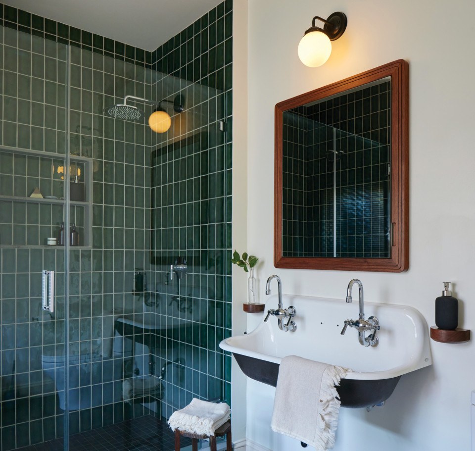 An existing schoolhouse sink informed much of the primary bathroom’s design.