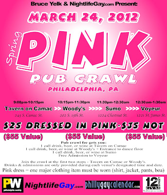 “I’m thrilled by the community’s continued support of all three versions of the PINK Pub Crawl every spring, summer and Thanksgiving Eve,” says Yelk of NightlifeGay.com. “I am very proud that in 2011 it was named ‘Best Community Event’ by G Philly due to its fun nature and broad community participation.”
