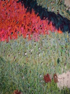 The new pieces in “Shagging” draw from impressionism and abstract expressionism – typically associated with painterly movements. But in Pannepacker’s textural pieces, the materials are woven rather than painted even though the end result lends itself to abstraction.
