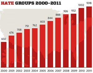 The radical right, says the Southern Poverty Law Center, has grown by leaps and bounds in the last few years. The watchdog group recently added almost a dozen new organizations to a list of anti-gay hate groups. A new report details the growth of these groups – organizations that seek to interfere with the LGBT rights movement’s progress – a trend the center blames on the rise of minority groups, America’s first black president and discussions about issues like same-sex marriage and, most recently, women’s health.