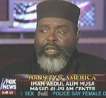 Background: This “anti-Semitic” group is based in Washington D.C. but has a presence here as well as in California, where it was founded in the 1990s by Imam Abdul Alim Musa (pictured), born Clarence Reams. During the early part of his life, Musa wound up in Leavenworth on drug charges. The Anti-Defamation League says that As-Sabiqun is an “anti-Semitic Muslim group that advocates for a global Islamic state,” naturally under Sharia law. Musa is banned from entering the United Kingdom.
