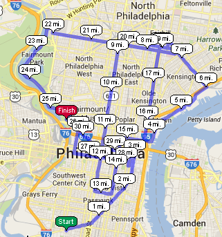 To help you understand exactly how much distance Rocky covered, I saved Rocky’s running route at the USATF site.