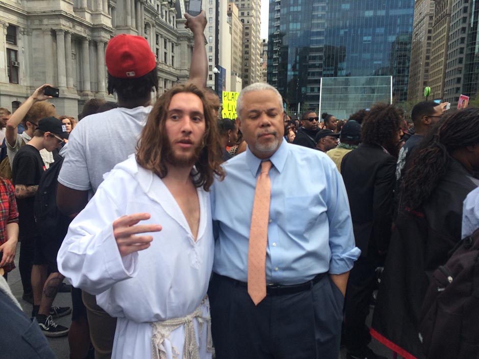 Speaking of characters, also in attendance was Philly Jesus, accompanied by mayoral candidate Anthony Hardy Williams: