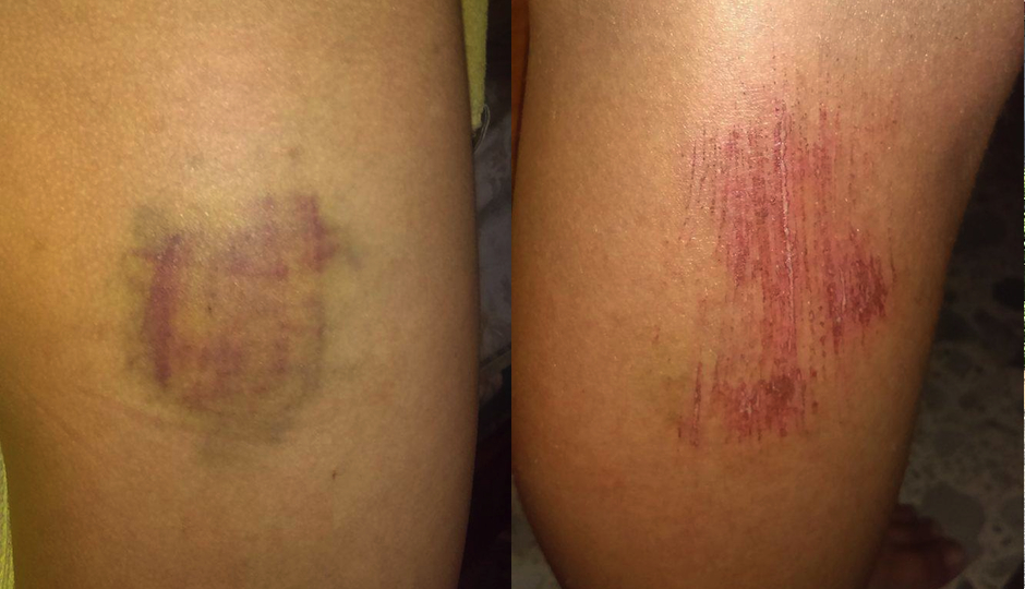 Margaret Saurman says these are some of the injuries that her son sustained on Tuesday.