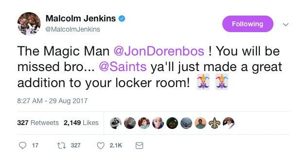Eagles general manager Howie Roseman offered a no-answer response to why the trade was made in a statement, saying: “During this time of the year there are many difficult decisions to be made. We are pleased that an opportunity presented itself to allow Jon to continue his career with the Saints, and we wish him all the best. Even though he won’t be on the field with us this year, we hope that he will one day return to retire as an Eagle, and rejoin our organization in some capacity.”