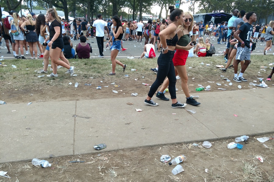 7:40 p.m.: Deep crowds await rap titan Kendrick Lamar performance on the main stage. Heading there, I can’t help but notice how the once grassy vistas of the parkway have turned into a wasteland.