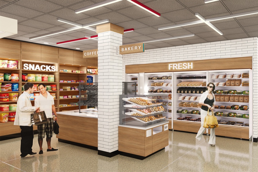 So what’s the deal with the tiny Wawa? The under-3,000-square-foot shop (which, needless to say, will not include a gas station) will resemble the small grab-and-go stores you can find in train stations and airports. The small Wawa will include a “Test Nest” that will feature more environmentally friendly lids, straws, bags, and stirrers. Here’s a rendering: