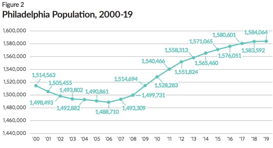 However, the increase was pretty marginal in 2019: fewer than 500 residents. Still, since our population was at its lowest 2006, Philadelphia has gained more than 95,000 residents, thanks to factors like immigration and a boom in young adults. Combined with the city’s economic successes, the future looked promising in 2019.