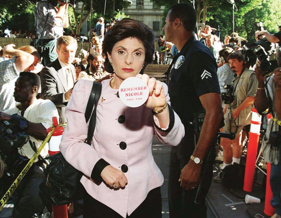 Gloria Allred displaying her support for Nicole Brown Simpson. / Photograph by Vince Bucci via Getty images