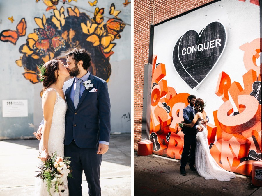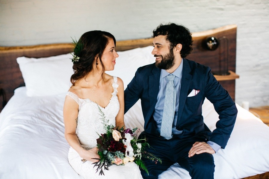 The spring wedding of Erin Lynn Legg and Brian William Forrest involved a brew-heavy theme with a pretty ceremony at Philadelphia Brewing Company and a lovely reception at Martha in Kensington. (And it’s no surprise that it does: the groom is an owner and distiller for Red Brick Craft Distillery!) Before the celebrations, the couple got ready at Wm. Mulherin’s Sons Hotel. The elegant, minimalist affair at fun local spots was coordinated and designed by Rabbit Rabbit Crew. See it all in the gorgeous photos below by Inna from Peach Plum Pear Photography.