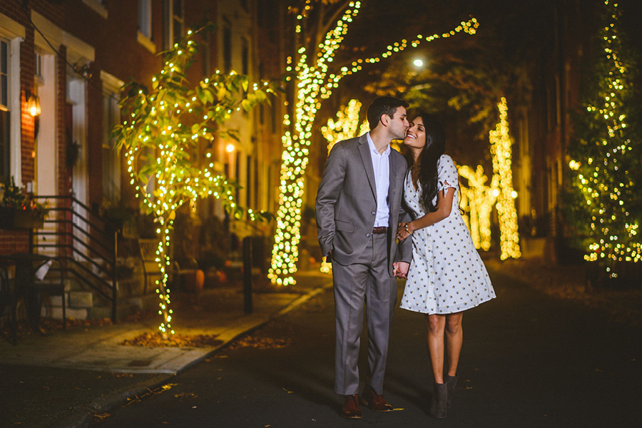 The proposal: Umang asked Mosum if she wanted to dress up and go out to dinner to celebrate Thanksgiving, since they weren’t traveling to see family during the pandemic. (Mosum is from Houston, and the couple typically visits her parents around the holiday.) She agreed, then “begrudgingly took off her sweatpants” and changed into non-quarantine attire. The pair decided to walk down Addison Street on their way to dinner. Since moving to Philly four years ago, Mosum has often expressed to Umang that she thinks it’s the most beautiful street in the city. So it’s not surprising that he used it as the backdrop for his proposal.