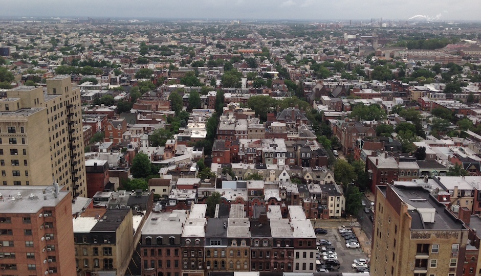 The units look small but solid — ideal for the young professionals the building owners hope to reach. There are excellent views in all directions through floor-to-ceiling glass, and, on the corners, small balconies. I snapped a few photographs from the balconies, including the above of South Philly.