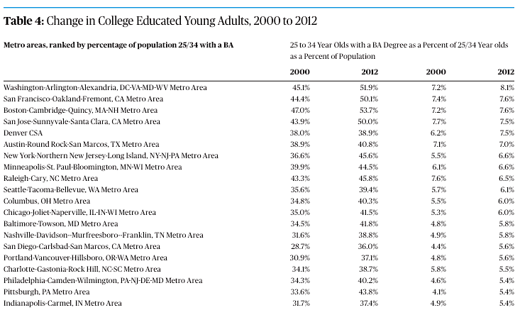 Talented young workers are both economically important in their own right—playing especially important roles in meeting the labor needs of fast-growing knowledge-based firms—and also as a kind of indicator of the overall health and attractiveness of a metropolitan area.