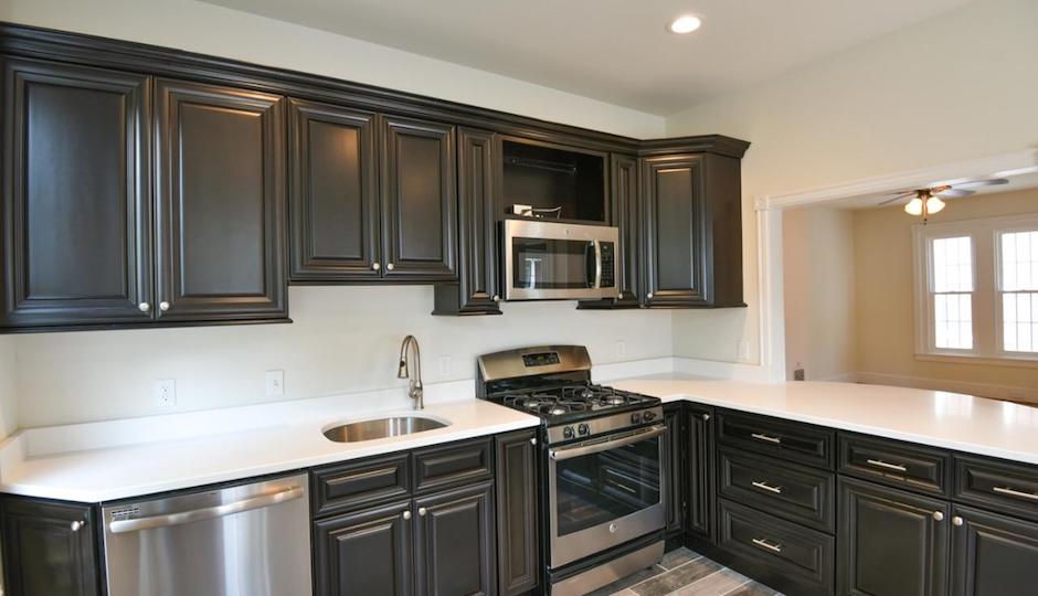 The builders didn’t skimp on quality either: those are real hardwood floors in the living room and espresso-stained wood cabinets in the kitchen. The main floor living and dining rooms are extra spacious and filled with light from large new windows. You’ll be cooking with gas in the kitchen, and you can shower in the tile-lined stall shower in the full first-floor bathroom.
