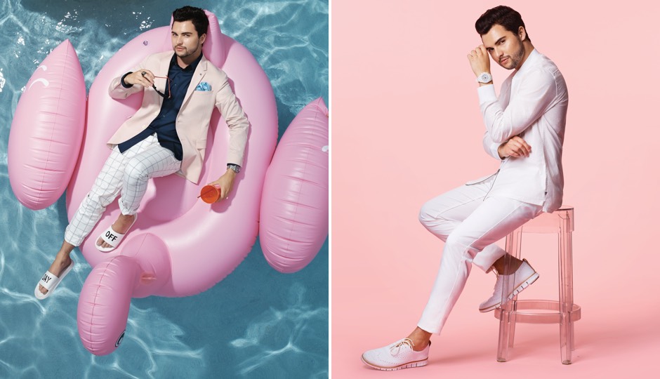 A few days later, I check his blog. He’s posted shots from his Palm Springs fling before Coachella, in the backyard of what looks like a private villa but is actually, as he notes, an Airbnb. He’s wearing a cream Krammer & Stoudt suit and a tee from Naadam Cashmere. In one photo, his friend Ana Prodanovich (13.4K followers), a blogger he met at Drexel, wears a red Flynn Skye maxi dress and rests her head adoringly on his shoulder. In another, Crumm sits barefoot, toes in the grass, looking up and away, perhaps thinking of his next branding opportunity, or an email he needs to send, or the rent check that’s due, or of nothing at all.