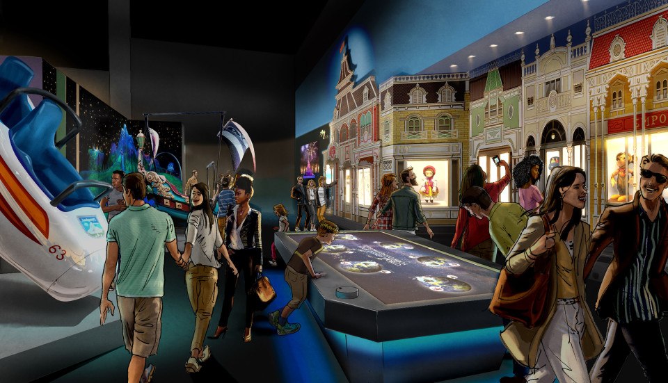 Rendering of the Disney Parks gallery in the Franklin Institute Disney100 exhibit / Rendering courtesy of Disney