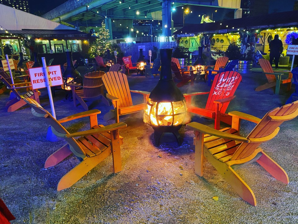 Head inside the cozy Lodge for comfort food, cocktails and warm beverages. Chickie’s and Pete’s will be serving up their Crabfries as well as cheesesteaks, chicken wings, and soup. FCM Hospitality (of Craft Hall, Harper’s Garden, etc.) brings back Black Iron BBQ with sandwiches (pulled pork, burgers, a vegetarian “chopped cheese” cheesesteak), loaded tots, cheese curds and desserts.