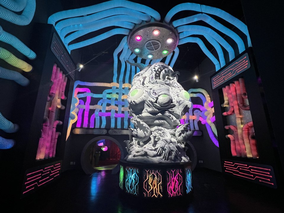 Philadelphia is just the second location of Otherworld, which opened in Columbus, Ohio in 2019. The 55 rooms and installations in the Philly location fit a similar aesthetic — neon, dystopian settings, cute yet creepy creatures, and sci-fi interactivity — but are unique to their new location. (More locations are planned.) It’s the brainchild of Jordan Renda, founder and CEO, who began his career designing escape rooms and haunted houses — a fact that makes perfect sense when considering Otherworld. All told, it took over 100 artists, animators, engineers and more creatives to bring the Philly iteration to life.